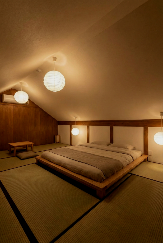 If your ceiling is really low (like, hit-your-head low), ditch the bed frame entirely. A Japanese-style floor bed or tatami mat setup looks intentional and stylish, not cheap. It maximizes the vertical space you do have, making the room feel taller.