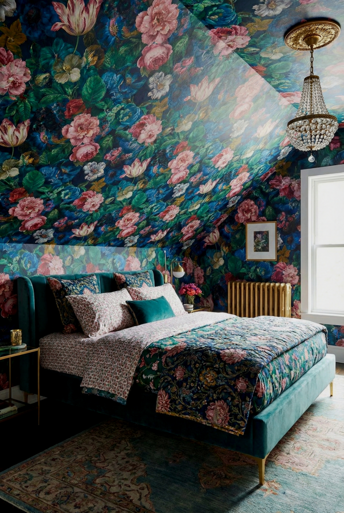 Many people are afraid to wallpaper attics because of the weird angles. Don’t be. Wallpapering the gable wall (the triangular wall at the end) draws the eye to the architecture. Or, for a cozy “jewel box” effect, wallpaper the sloped ceiling too!
