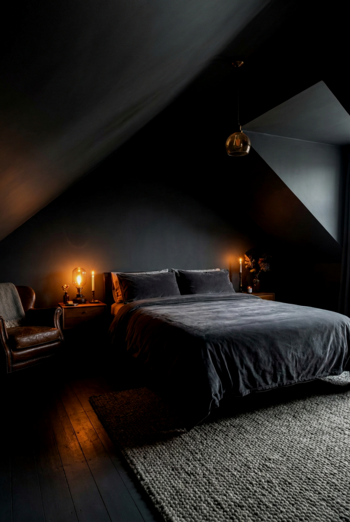 Flip the script. Instead of fighting the lack of light, embrace it. Painting an attic charcoal grey, navy, or forest green creates a cozy, womb-like atmosphere. It’s perfect for a bedroom where the main goal is deep sleep. Use warm amber lighting to keep it inviting.
