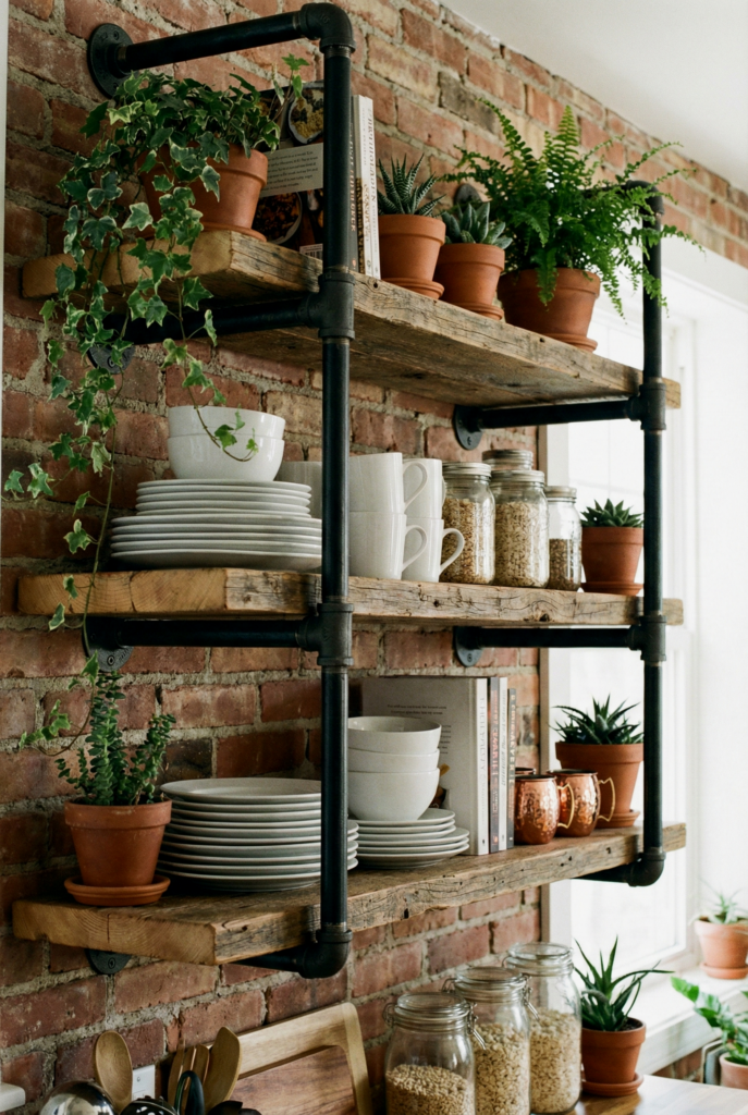 This is the rite of passage for every industrial decorator. Buying black iron plumbing pipes from the hardware store and pairing them with wood planks creates incredibly sturdy, custom shelving for a fraction of the cost of “designer” shelves.