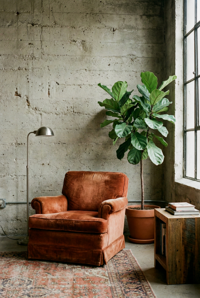 An industrial room needs a sense of age. Hit the flea markets. A vintage fan, an old typewriter, or a stack of weathered books adds that “found object” soul that makes the style feel authentic rather than mass-produced.